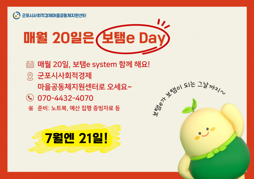 매월 20일 센터로 오세요