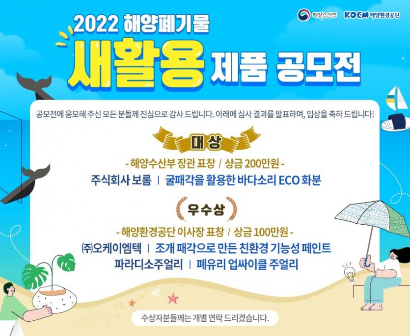 해양환경공단, 2022년 해양폐기물 새활용 제품 공모전 수상작 발표 |