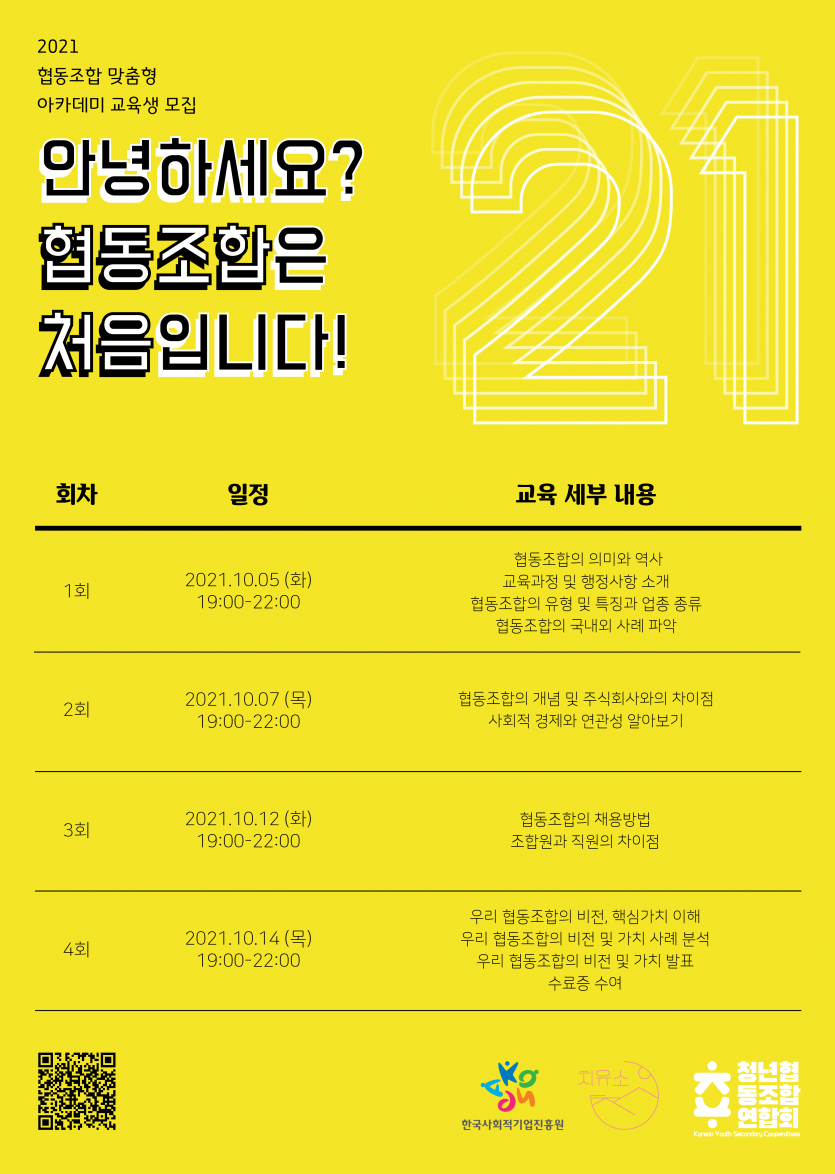 [2021 협동조합 맞춤형 아카데미 - 협동조합 신규 입사자 교육생 모집]