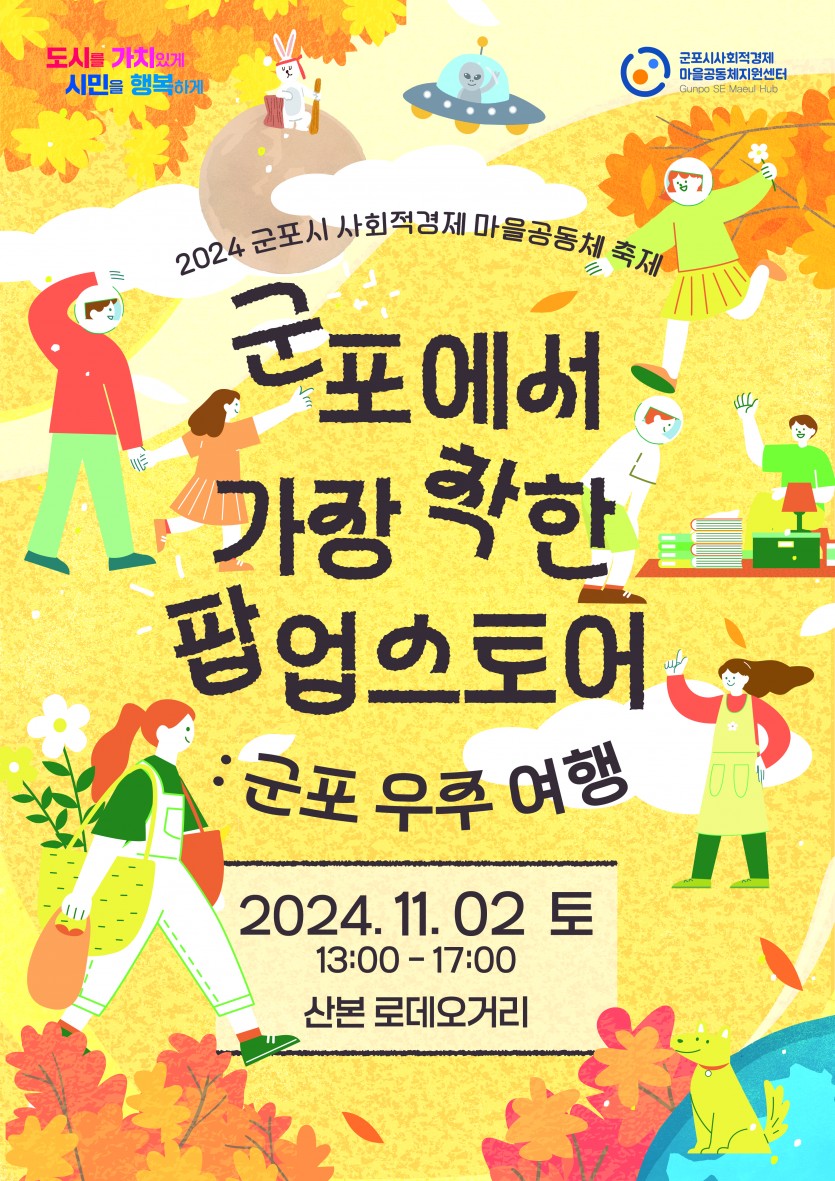 사회적경제조직, 마을공동체가 함께하는 "2024 군포에서 가장 착한 팝업스토어"가 11월 2일(토) 13시부터 17시까지 진행됩니다.