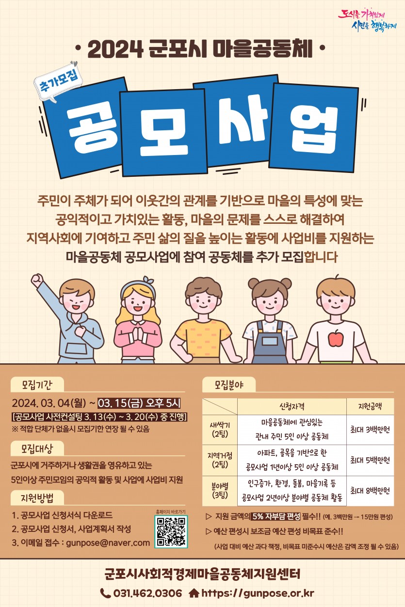 2024년 군포시 마을공동체 공모사업 추가모집 공고