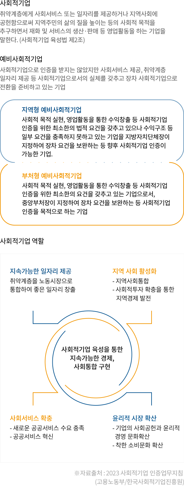 사회적 목적 실현, 영업활동을 통한 수익창출 등 사회적기업
